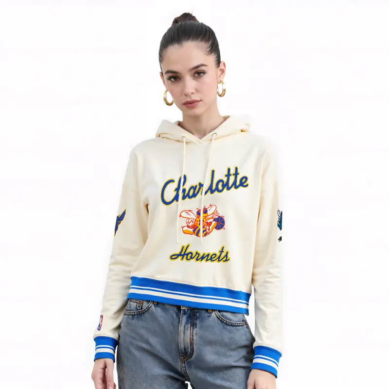 NBA CHARLOTTE HORNETS CITY EDITION 25-26 WOMEN’S RIB FLC CROPPED PO HOODIE (EGGSHELL\/ROYAL BLUE)
