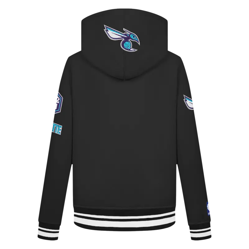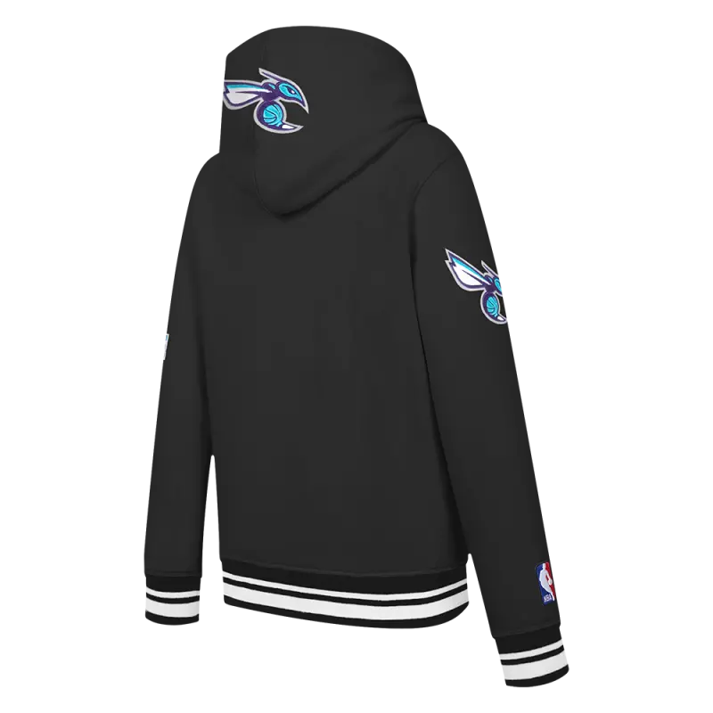 NBA CHARLOTTE HORNETS RETRO CLASSIC BIG BOYS RIB FLEECE PULLOVER HOODIE (BLACK)