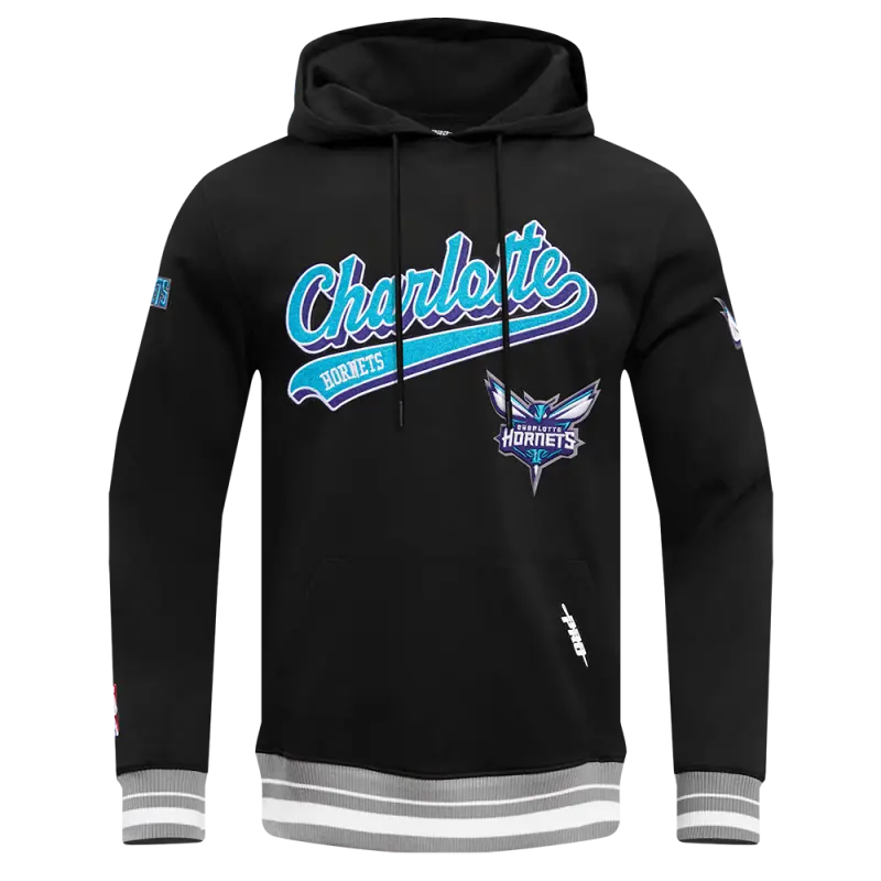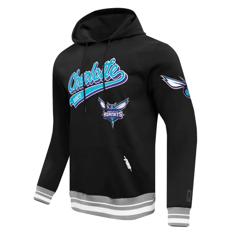 Home / Shop / Men / NBA CHARLOTTE HORNETS SCRIPT TAIL MEN’S RIB FLEECE PULLOVER HOODIE (BLACK\/GRAY)