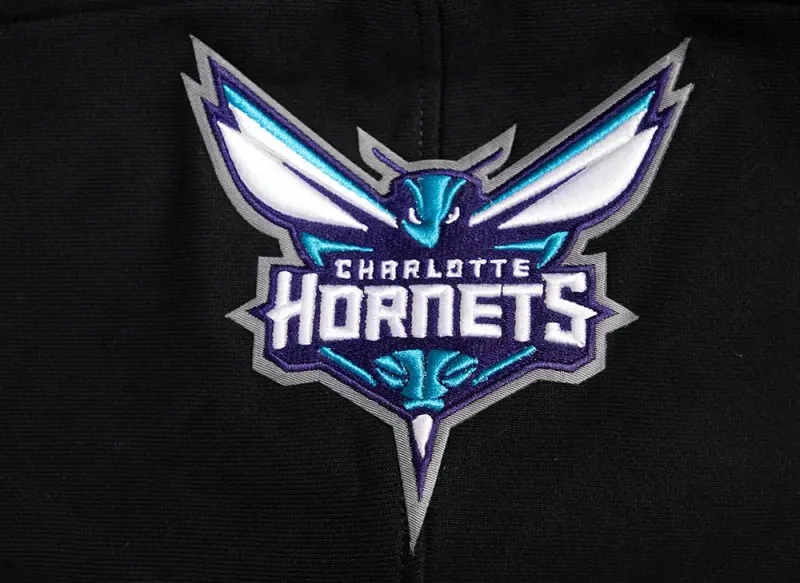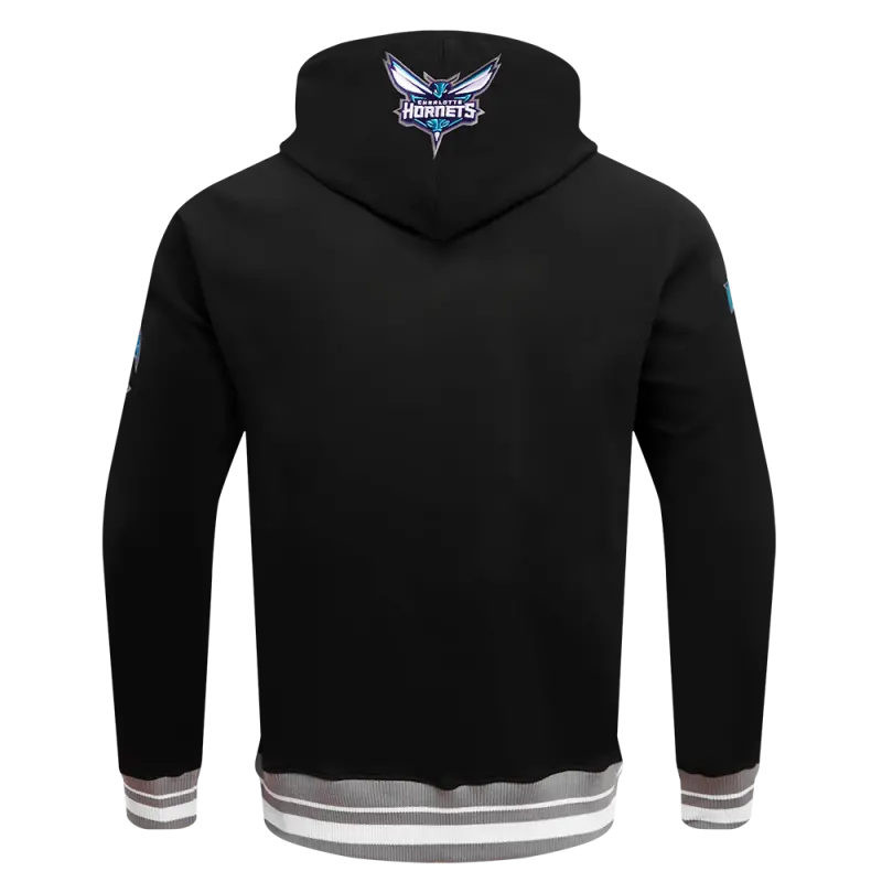 NBA CHARLOTTE HORNETS SCRIPT TAIL MEN’S RIB FLEECE PULLOVER HOODIE (BLACK\/GRAY)