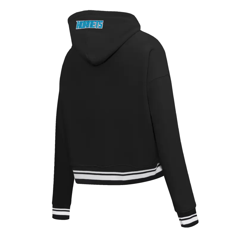 Home / Shop / SWEATSHIRTS / NBA CHARLOTTE HORNETS SCRIPT TAIL WOMEN’S RIB FLEECE CROPPED PULLOVER HOODIE (BLACK)