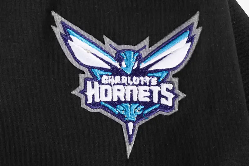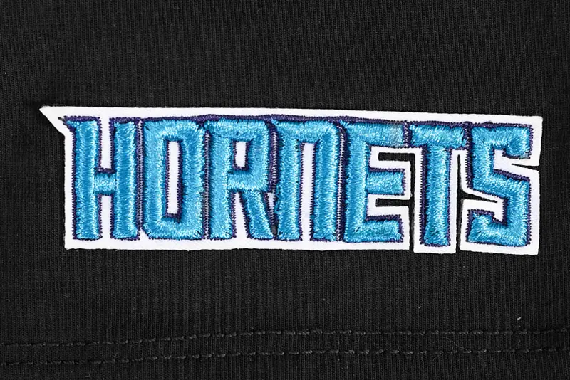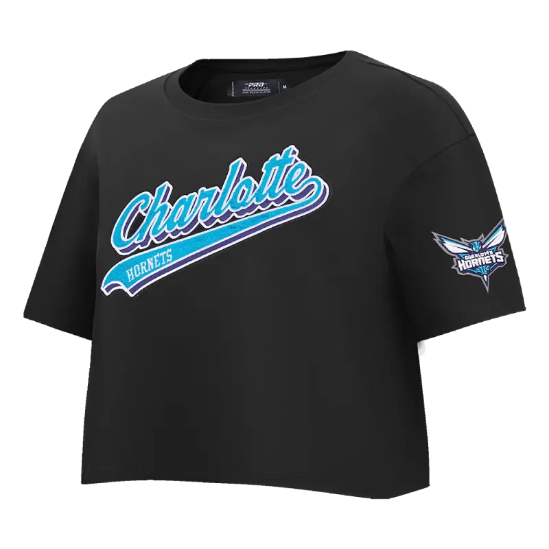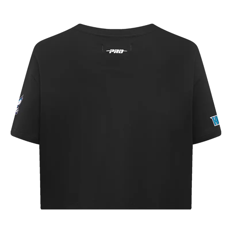 NBA CHARLOTTE HORNETS SCRIPT TAIL WOMEN’S SINGLE JERSEY BOXY TEE (BLACK)