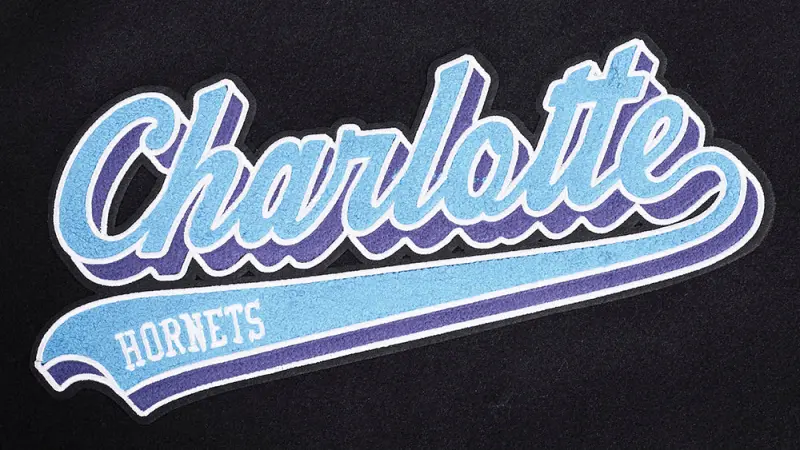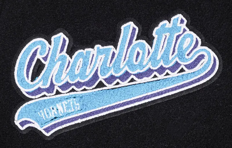 Home / Shop / JACKETS / NBA CHARLOTTE HORNETS SCRIPT TAIL WOMEN’S WOOL VARSITY JACKET (BLACK\/WHITE)