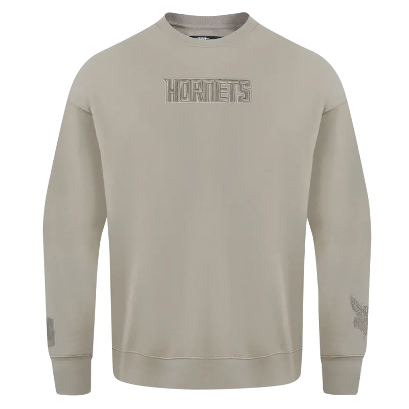 NBA CHARLOTTE HORNETS WINGSPAN MEN’S DROP SHOULDER FLEECE CREWNECK (TAUPE)